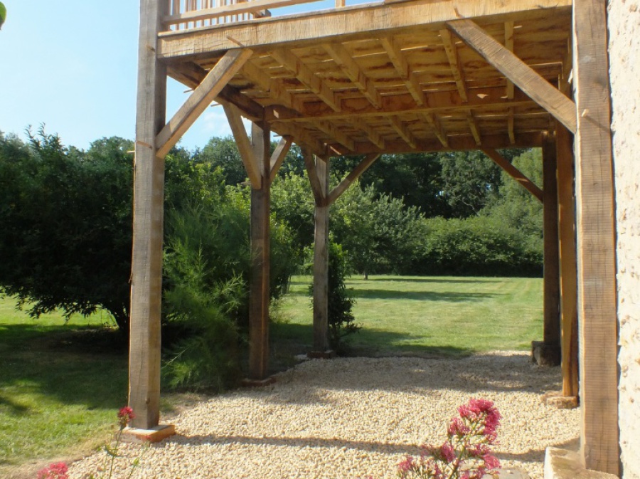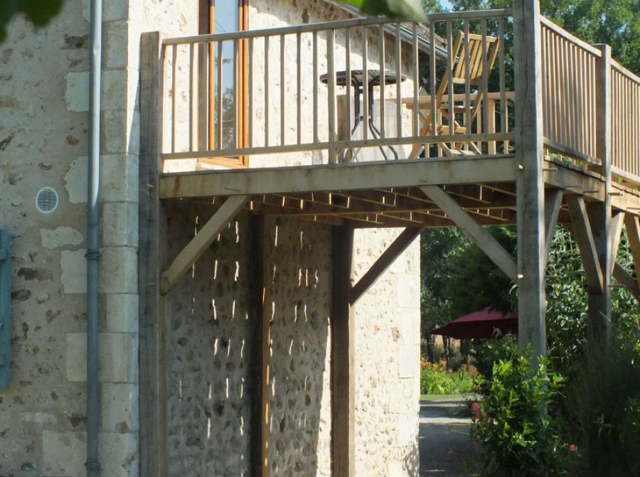We constructed the balcony from oak felled from our own woods and it has been a great addition to the house providing a place of relaxation, sunbathing, reading, evening drinks or morning breakfast... For those who love nature this is a superb place to watch the red kites and deer - who if you remain quiet, will come and visit right under the balcony early morning and evenings.. The balcony has now weathered and looks a natural part of the house and grounds. Accessed through French doors from the first floor.