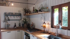 The accommodation consists of a large living room, newly fittedkitchen area with triple aspect windows, entrance hall, modern toilet and shower room, large walk in larder and a mezannine style bedroom. Dishwasher, washing machine, and 2 friges are also available to purchase by separae negotiation.